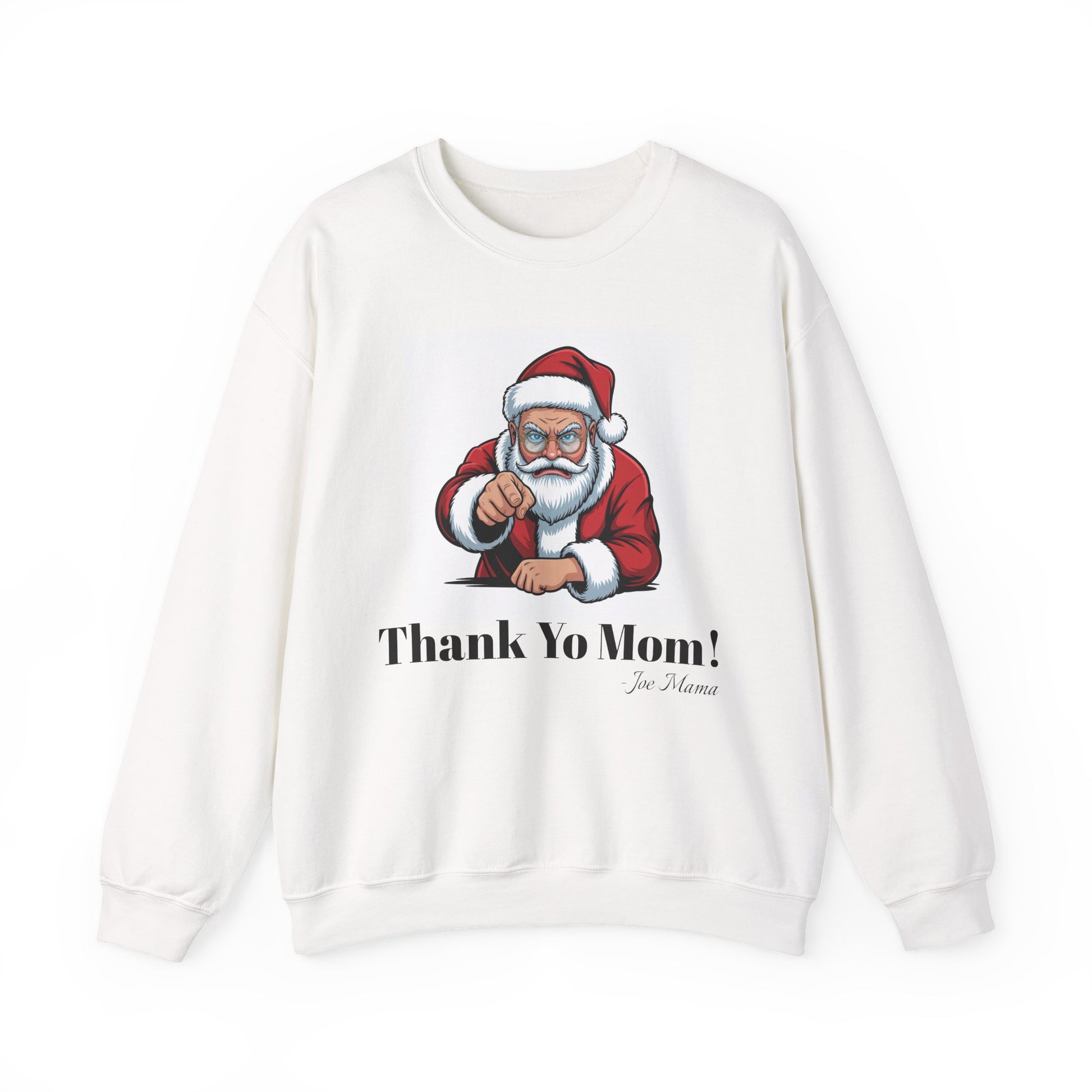 A festive and cozy Santa Claus Thank Yo Mom for the holidays sweatshirt perfect for the winter season. This unisex heavy blend crewneck sweatshirt is designed for adults who enjoy celebrating Christmas and spreading holiday cheer. It offers a comfortable fit and durability, making it an ideal choice for holiday gatherings and casual outings.